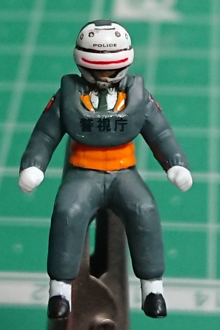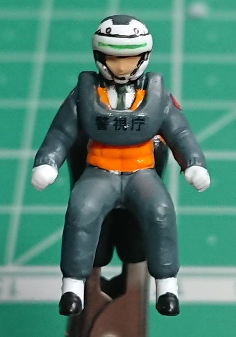 アオシマ 太田 功 太田が一番上手く誤魔化せてると思います。顔は細かすぎてやりませんが、スミ入れしたら口まで伸びていきました。オレンジはあえてテカらせてみましたが…どうするか… #パトレイバー模型部