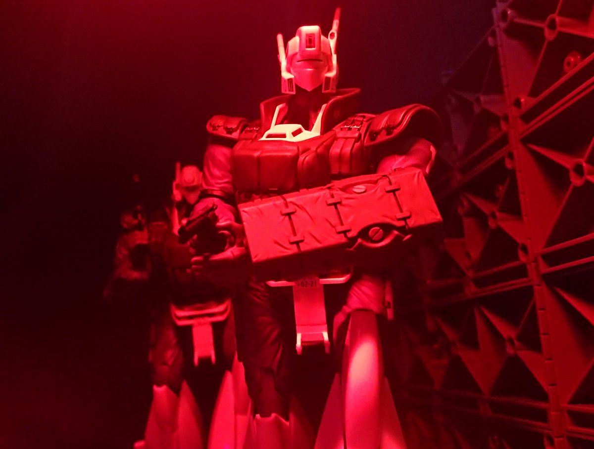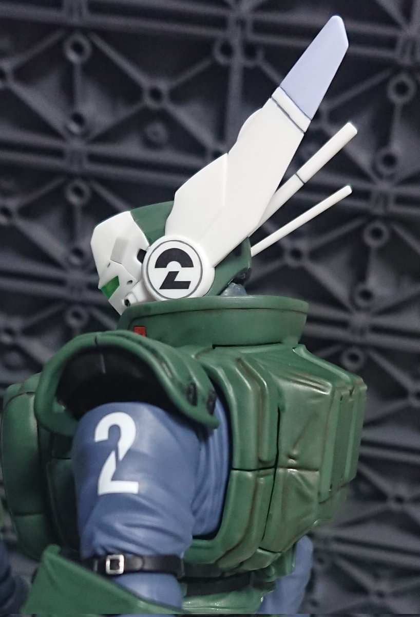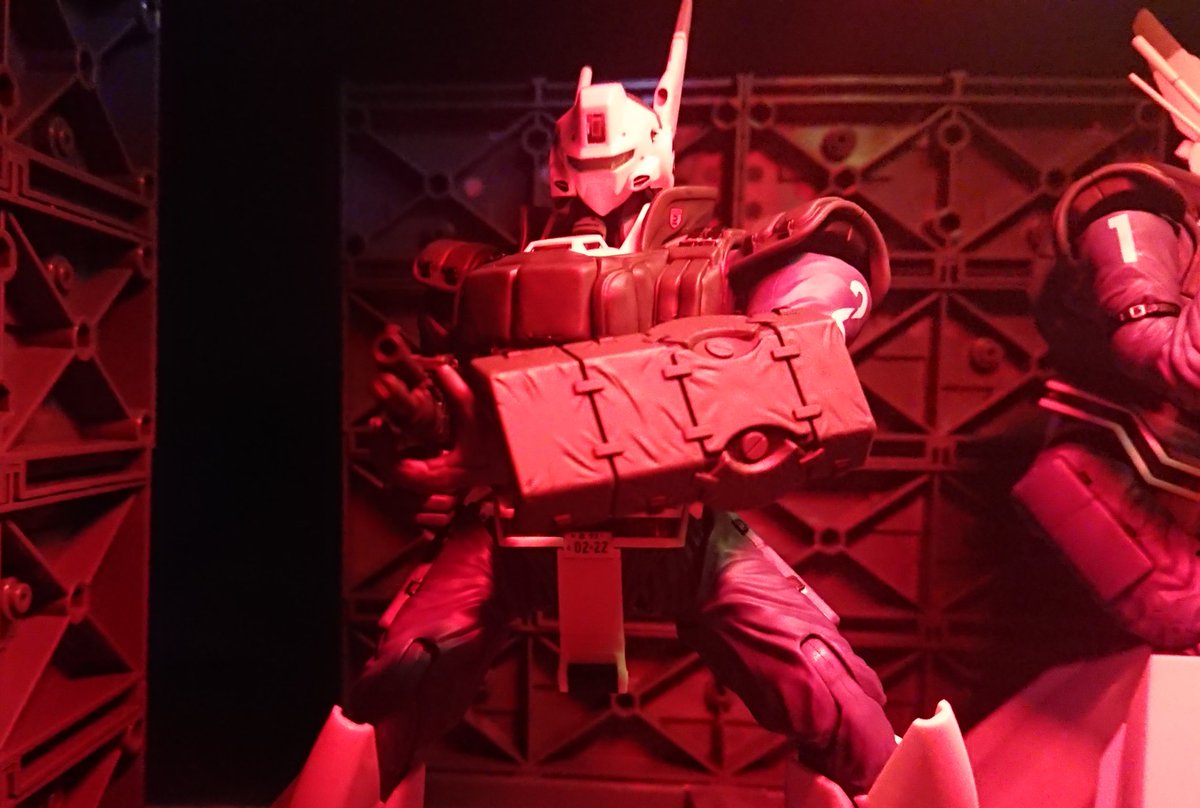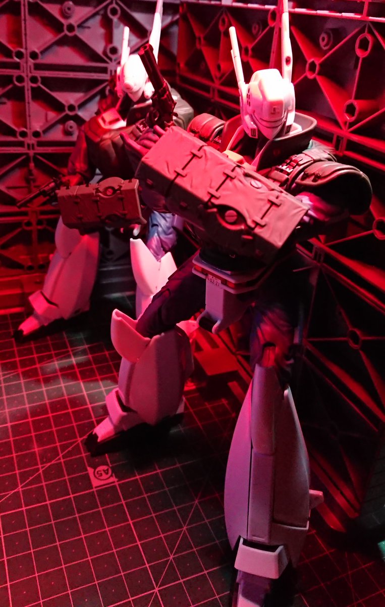 アオシマ リアクティブアーマー 後はアンテナの先端を水色っぽくするかどうか… どうしてもあるものだけでなんとか劇中を再現すべく、お見苦しさが控えめな撮り方を模索中です…。金具が光ってていい感じなので、やっぱり赤みがかかってる中で遊びたいので…コタツ買うか… #パトレイバー模型部