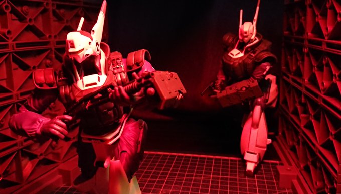 アオシマ リアクティブアーマー 太田もすぐ仕返しせずに教訓を活かし無事ピストまで走り抜け、本編との違いを見せた三機。見たかったアングルを模索中です…。 サイズは合わないでしょうが、今更ながら当時は八割引でもスルーしてたEXモデルのイクストルが欲しくなります…代役 #パトレイバー模型部