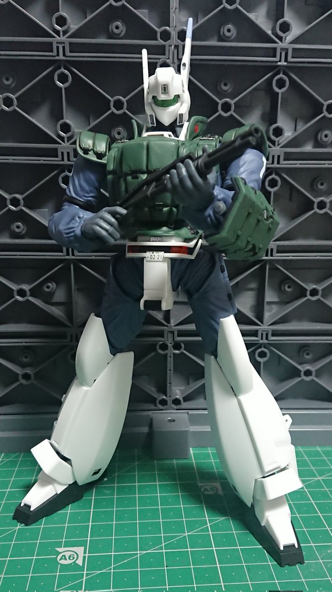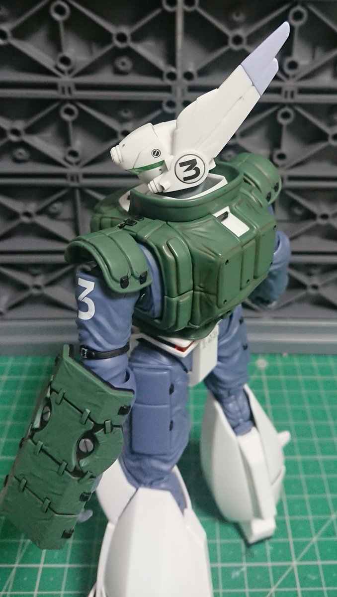 イングラム リアクティブアーマー 1号機 部分塗装だけですが完成…。関節シーリングがプラなので可動も抜群、アオシマの拘りに感動です。長年待ちわびたリアクティブアーマーの決定版は作ってて本当に楽しかったです。今回1号機のカッコよさに改めて気づかされました #パトレイバー模型部 #最後の出撃