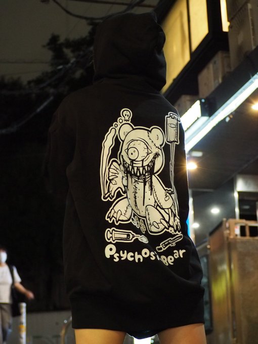 本日入荷✋ 僅かですが新ロゴタイプ(ドロドロしたロゴ版)も入荷してます❗️ すぐなくなる可能性あるので欲しい方はすぐにゲットだぜ✨ #イラスト #ファッション Psychosis Bear/Parker▼ player-design.stores.jp/items/61a64878…