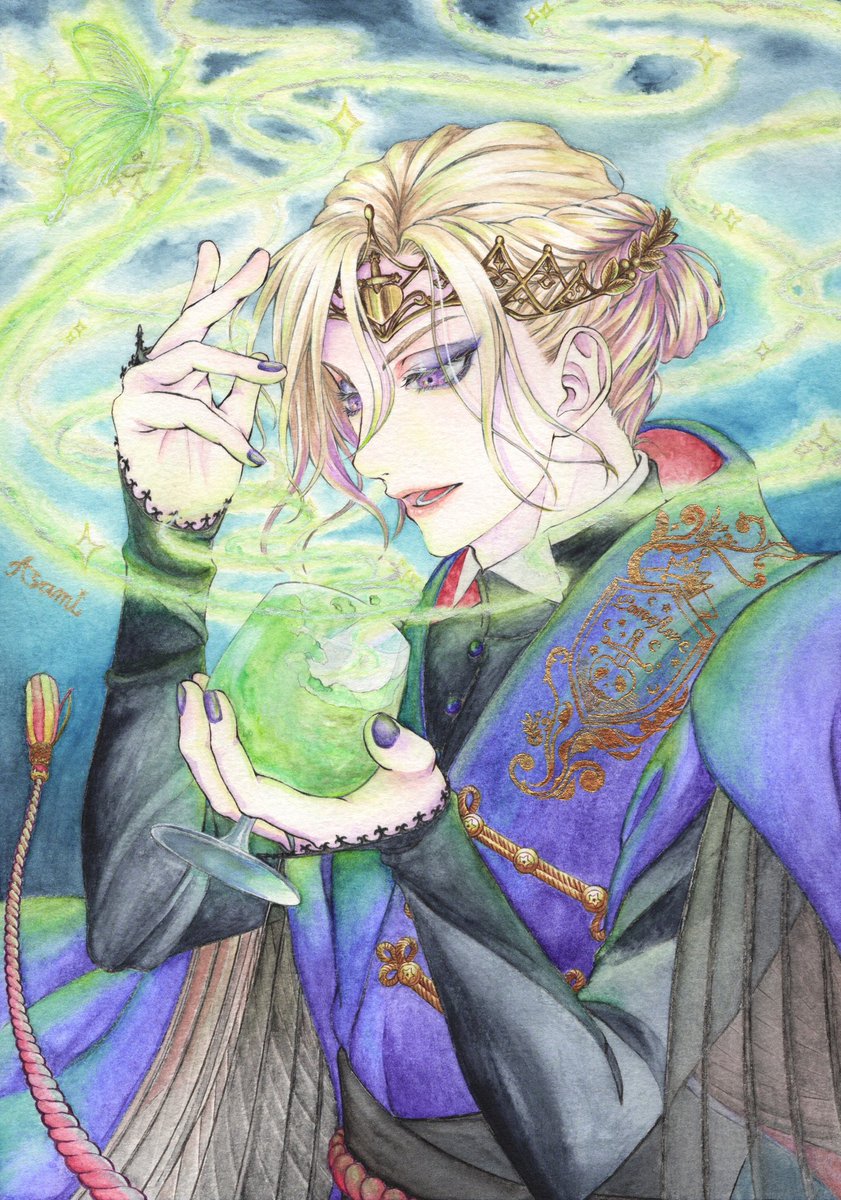 『毒薬作りの名手』 #ヴィル・シェーンハイト誕生祭2021 #twstファンアート #twstアナログファンアート ヴィル様お誕生日おめでとうございます!! 強く美しく、どこまでも高みを目指す貴方が大好きです👑💐