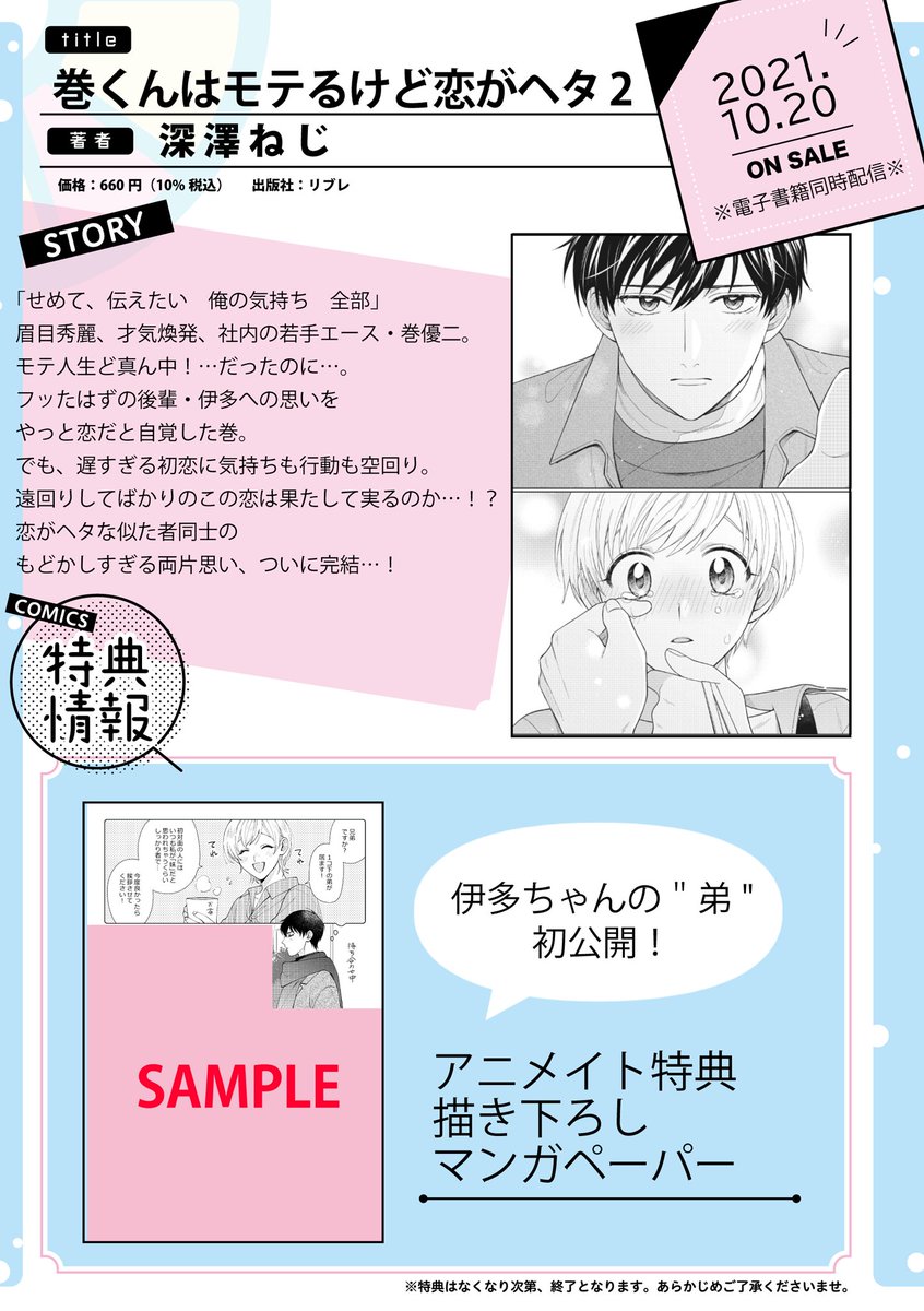 【📣10月20日発売‼️】 『巻くん恋ヘタ』第2巻🤦♂️💔発売まで遂にあと1週間!!ということでお知らせ解禁です!!! 🤦♂️アニメイトさんでのご予約はこちらから (購入特典の描き下ろしマンガペーパー付き!) →animate-onlineshop.jp/sphone/product… 🤦♂️アマゾンさんでのご予約はこちらから→amazon.co.jp/dp/479975257X