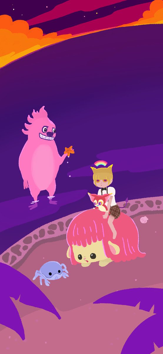 たろさん(@rbr_tkmhk )ちのリヴリーお借りして、ロック画面描かせていただきました!ありがとうございました😆ピンクのオーガが可愛くて🏖夕暮れの海で遊んでもらいました。