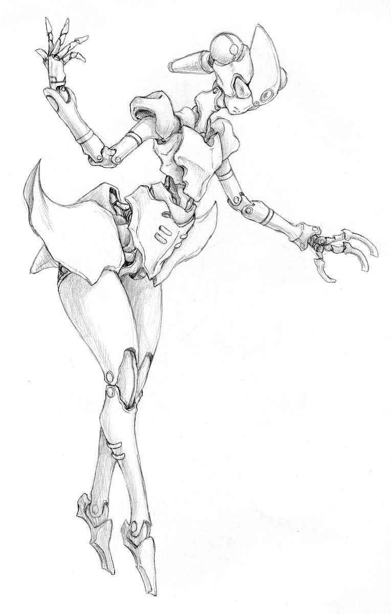 今日のラフスケッチ。 サイボーグダンサー。 #イラスト