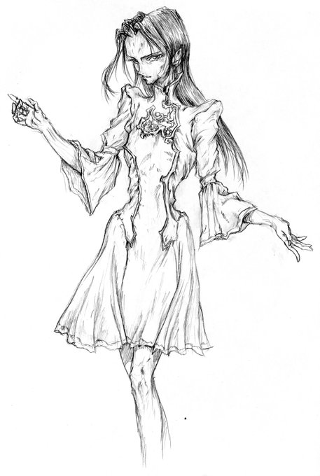 今日のラフスケッチ。 ミスマッチ感を狙ってドレスアップ! #イラスト #鉛筆画