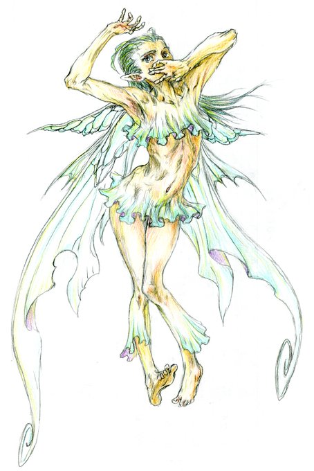 今日のラフスケッチ。 ひらひら付き妖精。 #イラスト #妖精