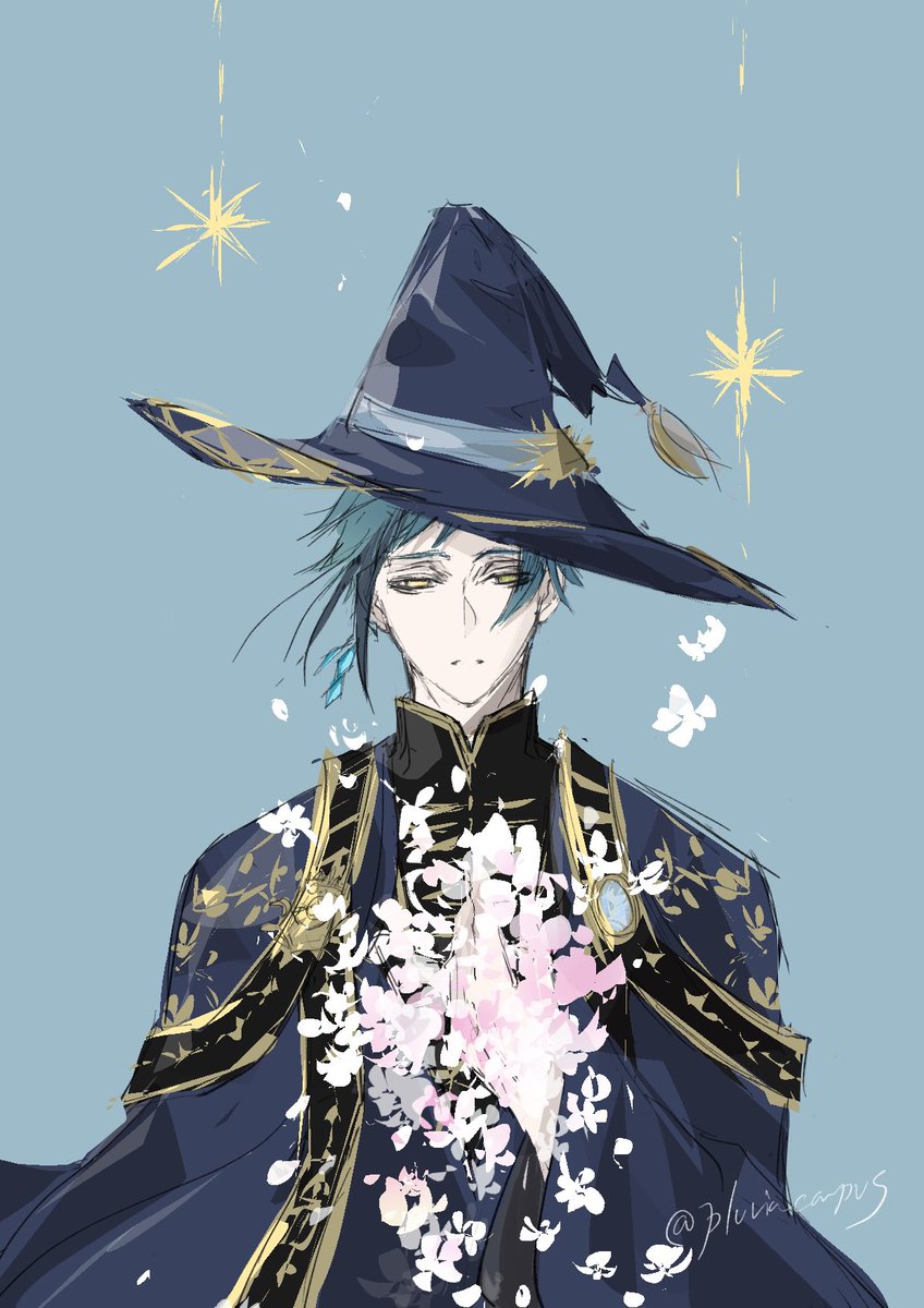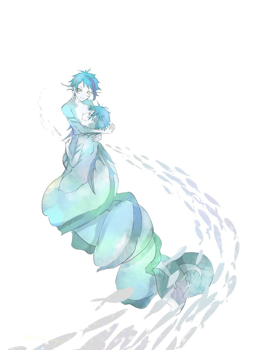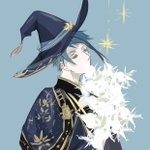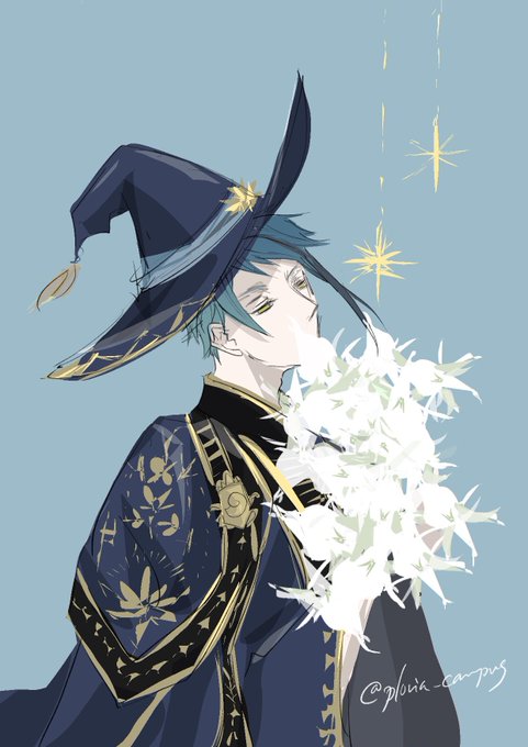 🦈💐 ーPseudocydonia sinensis 🐬💐 ーAngraecum お気に入りなのでこちらも再掲!🙌💕ブルーム衣装が発表された直後に描いたもの🖼花言葉は……🤫 #ジェイド・リーチ誕生祭2022 #フロイド・リーチ誕生祭2022