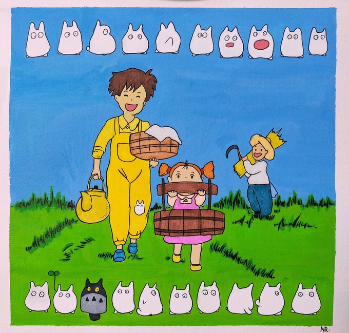 Satsuki and Mei Kusakabe from #MyNeighborTotoro 🌻 This is from the ending credits I guess, doesn't really remember, need to rewatch ehe #Totoro #ghibliredraw