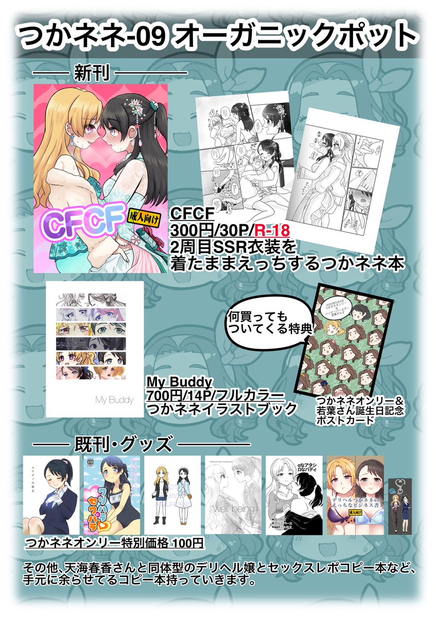 つかネネ着衣本サンプル&お品書き | 🍙 #pixiv pixiv.net/artworks/10745… つかネネオンリーのお品書きです。つかネネ-09にてお待ちしてます♪