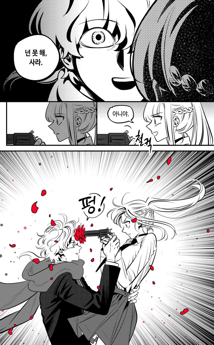 1916 3948 미도사라 (4/8) 사라가 미도리의 총을 훔쳐서 쓰는 만화 ⚠️폭력적인 장면과 피가 등장함 그린 사람이 총을 잘 모릅니다 23/08/05 16:35