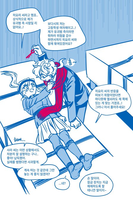 미도사라 이 장면.. 잘 보면 미돌휘 넥타이가 삐져나와있다 이를 통해 유추할 수 있는 점 : 사라가 돌휘한테 달려들 때.. 돌휘의 저 언저리든 어디든... "닿긴 닿았다" 이걸 생각하면 나는.... -더보기-가 된다..
