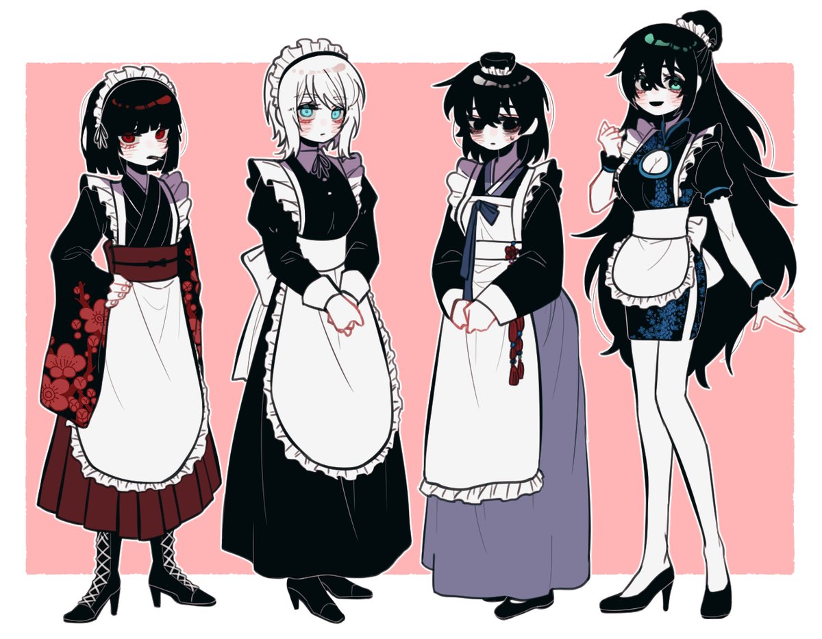 한복 메이드 리퀘를 받아 기왕 그릴거 료슈, 파우스트, 이상, 홍루로 4가지 그려봤어요. 이상과 홍루는 뇨타입니다.