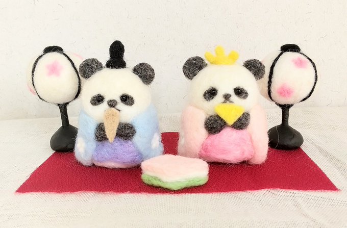 9 39 パンダのひな祭りできました🐼🌸 上野動物園のパンダちゃんも元気にすくすくと育ってますね☺️ 成長のスピードがはやいな~✨ #羊毛フェルト #ハンドメイド #パンダ #ひな祭り 22/02/02 18:50