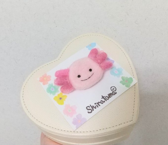 12 48 ウーパールーパーのブローチのお迎えが決まりました꒰(·─·)꒱ みなさんありがとうございます❤ 一目惚れだったそうで、この子を生み出せて心からよかったのと嬉しくてあたたかい気持ちになりました☺️✨ 気に入っていただけますように(*´▽`*) #ウーパールーパー #羊毛フェルト #ブローチ 22/03/31 19:00