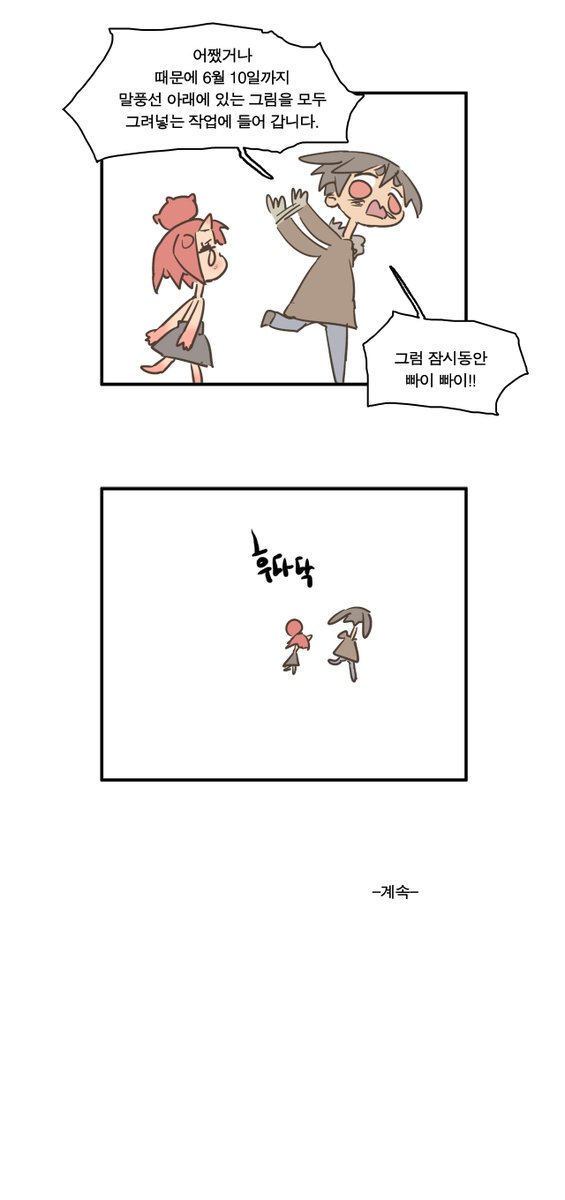 이번화 마감 잘 끝냈고 이제 일어남, 곧 콘티 외출을 하겠지.