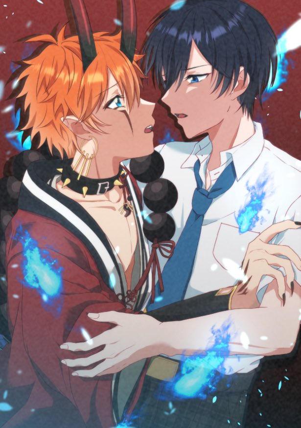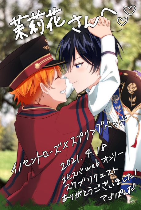 30 102 【エアスケブ】イノセントローズ×スプリングベッドのいちゃいちゃ 茉莉花さんスケブリクエストありがとうございました😊❣️ めちゃくちゃ今頃ですみません💦 描くの楽しかったです〜💙🧡 21/05/23 23:28