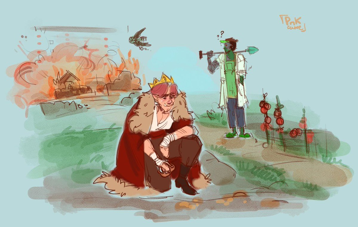 some unexpectable crossover bc i think these two have a common thing for chaos AND gardening happy 1st summer day :) #dsmpfanart #Hermitcraftfanart #technobladefanart #Docm77fanart