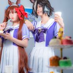 メジロドーベル cos *5月6日 誕生日おめでとう🎉 ドーベルと一緒に紅茶はいかが?🫖✨ 今まで色んな衣装、準備してコスしたよー!夏ワンピも製作したいっ👒💙 #ウマ娘になってしまいました #メジロドーベル生誕祭2023