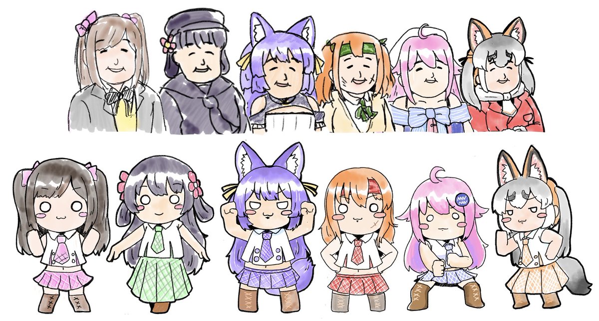 3 14 #今月描いた絵を晒そう #しゅりむす しゅりむすの面々をらくがきしてた。 ミアちゃんとシマハイちゃんはこれから描くのだ...! 21/11/30 21:48
