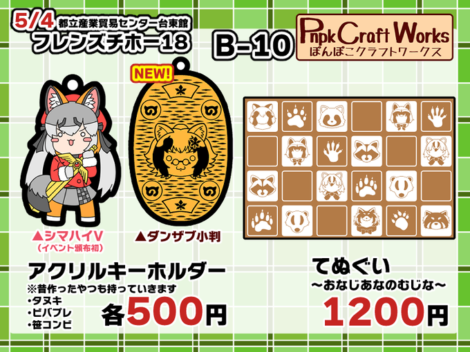 明日5月4日開催フレンズチホー18(19?)のおしながきができました~。 アクキーとかてぬぐいを頒布するのでよしなに。