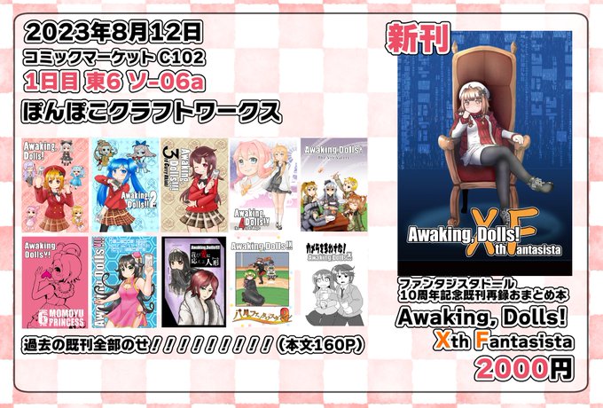 【おしらせ】 夏コミのおしながきができました 既刊10冊+コピ本を1冊にまとめた1冊「Awaking,Dolls Xth Fantasista」が出ます!