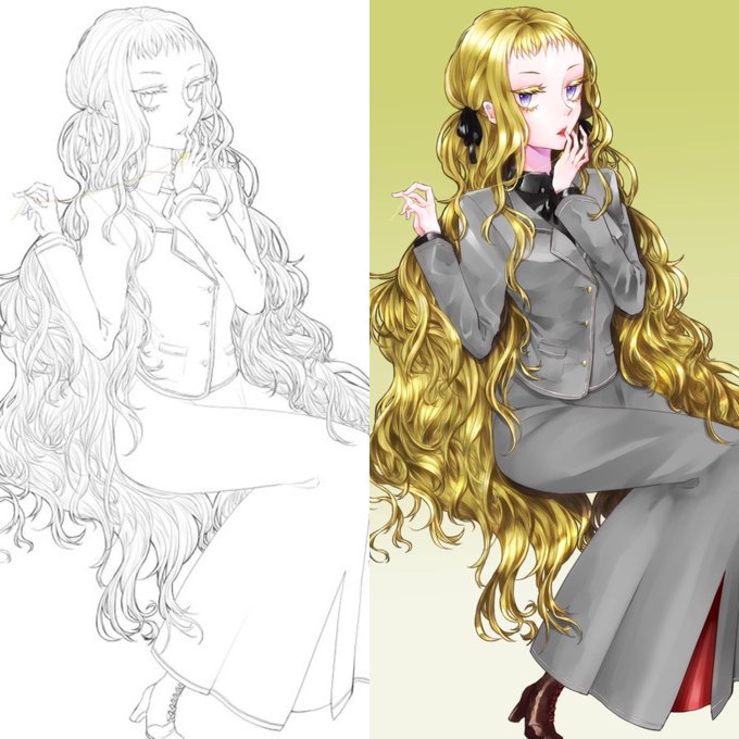 #皆さん線画と塗った後を見せてください 線画がほんとに苦手