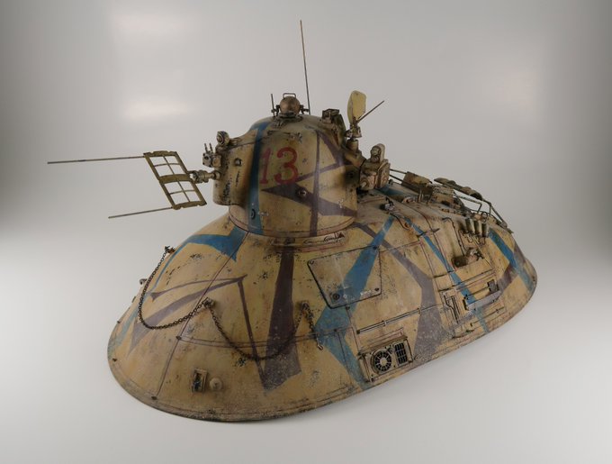 ちな以前作った宇宙用カウツ髑髏迷彩。宇宙機は盛ったりしてフォルムを追求しやすいんじゃないかな?重力とか嵩張るとか無視できるから。個人的に宇宙機を塗るとき実はどう汚していいか分からなかったりする。 #マシーネンクリーガー #マシーネン #カウツ