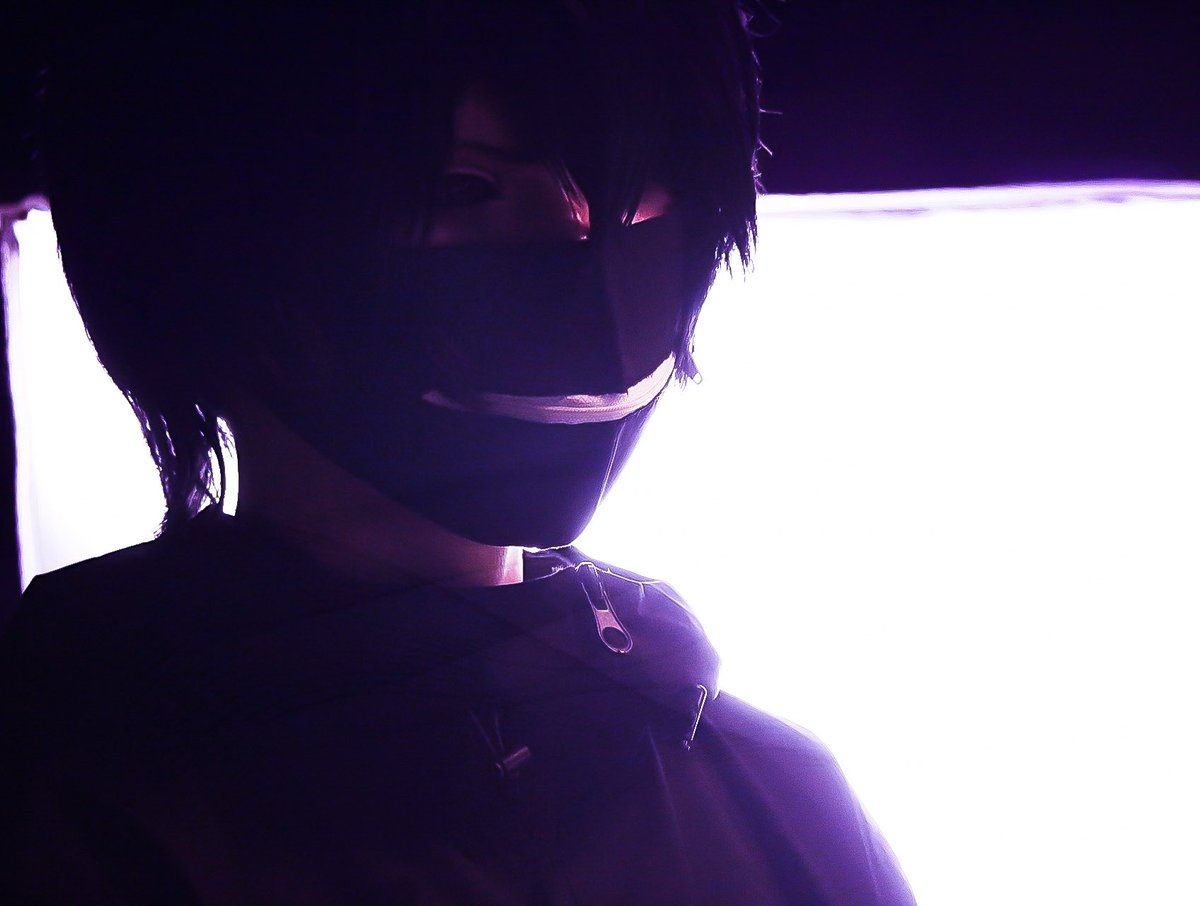 夜になるとあまりにも黒くて背景と同化する青i森さん。カメラマンさんにお願いだからライトの前に行って……と言われる🍎 青i森:ぽち汰 photo By:椎茶(@4_sa ) #47tsコスプレ