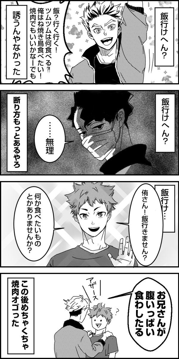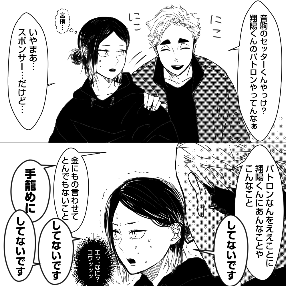 92 1266 #侑日 前提2コマ ケンマとアツムくん 強めの圧をかけるアツムくん 22/09/14 20:05