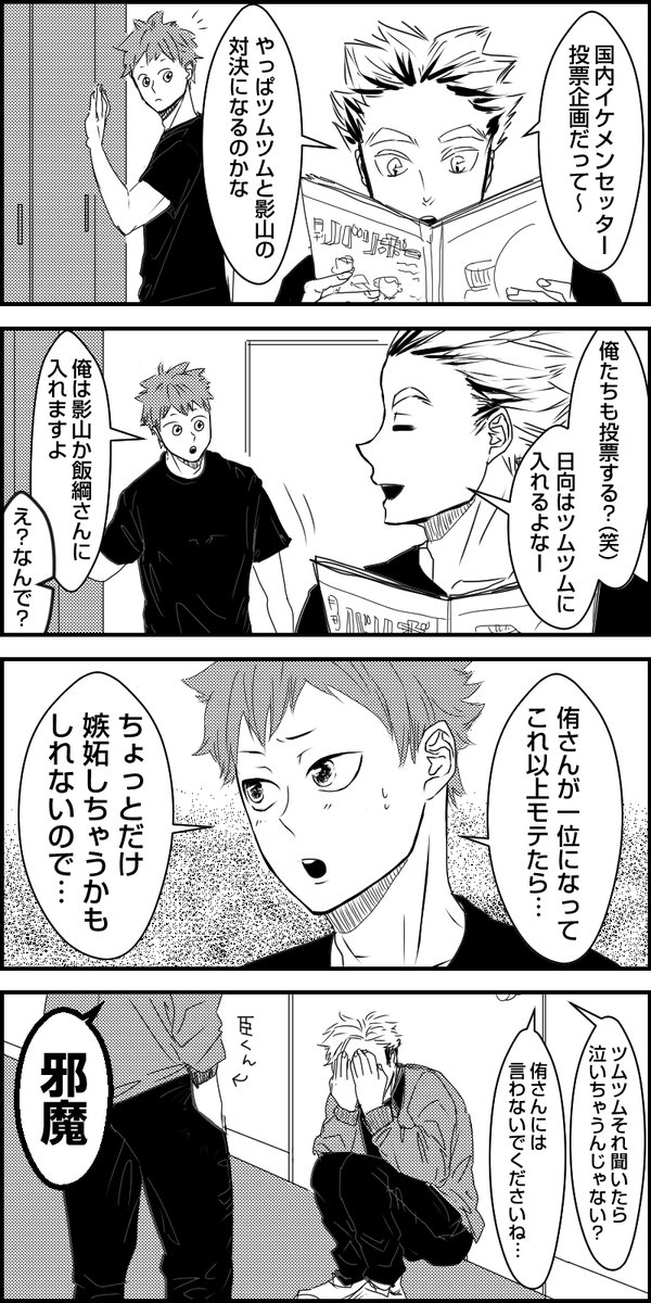 #侑日 前提4コマ漫画 トビオちゃんとアツムくん