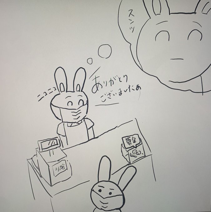 マスクの下はゴリゴリ真顔の店員さん。 #イラスト #あるある