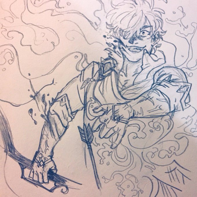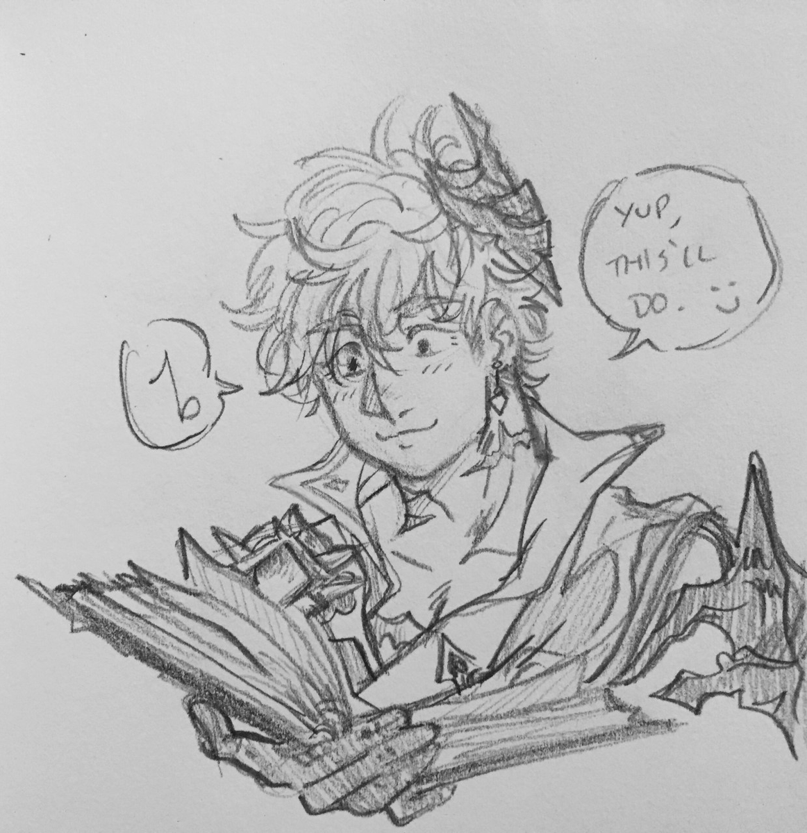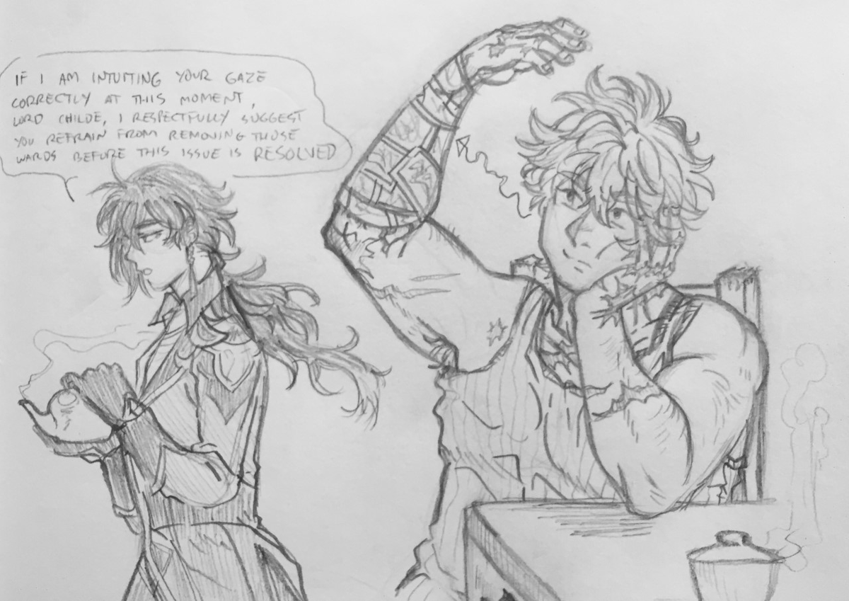 so you know that one profile blurb where childe mentions he's practicing the bow because it's his worst weapon discipline? i've been thinking... that must imply he considers himself an acceptable catalyst user. thinking about what that looks like. #genshinimpactfanart #childe