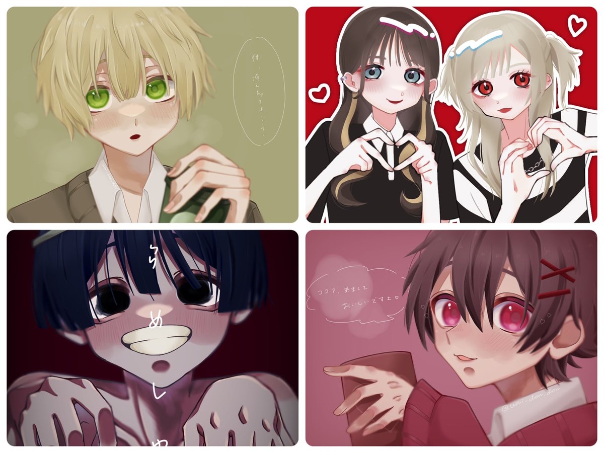 #今年も残りわずかなのでお気に入りの4枚を貼る 4枚悩む〜…けど、 版権以外ならこのあたりかも🐣🌱 最近あんま描けてないから来年はもう少し描けるように頑張るます…🦀 来年も仲良くしてください😳💖💖
