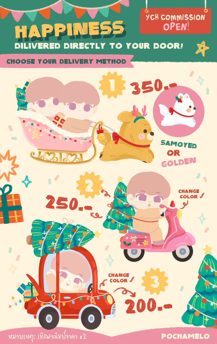 [pls RT🥺] YCH Christmas🎄 ‘HAPPINESS delivered directly to your door’💌 มาส่งมอบความสุขช่วงคริสต์มาสกันค่า เลือกวิธีจัดส่งได้เล้ย🛺 สอบถามเพิ่มเติมที่ DM ได้เลยค่า☃️ #commissionTH #commissionopen #คมชโฮมุ้ #รับวาดรูป #รับวาดแฟนอาร์ต #คมช #ych