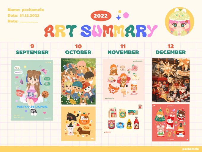 🎨2022 pochamelo’s art summary🌷 #Artsummary2022 ปีนี้เป็นปีพีคๆที่กลับมาวาดรุปหลังจากหายไปหลายปีเลยย เริ่มต้นที่ปลายเดือน9เลยมีให้ลงอยุแค่นี้;-; ไว้ปีหน้าจะพยยวาดให้เต็มทุกเดือนนะ🥺💖 🎖️pochamelo award 2022🌻 ให้รางวัลงานตัวเองที่เทรดด้านล่าง!👇🏻