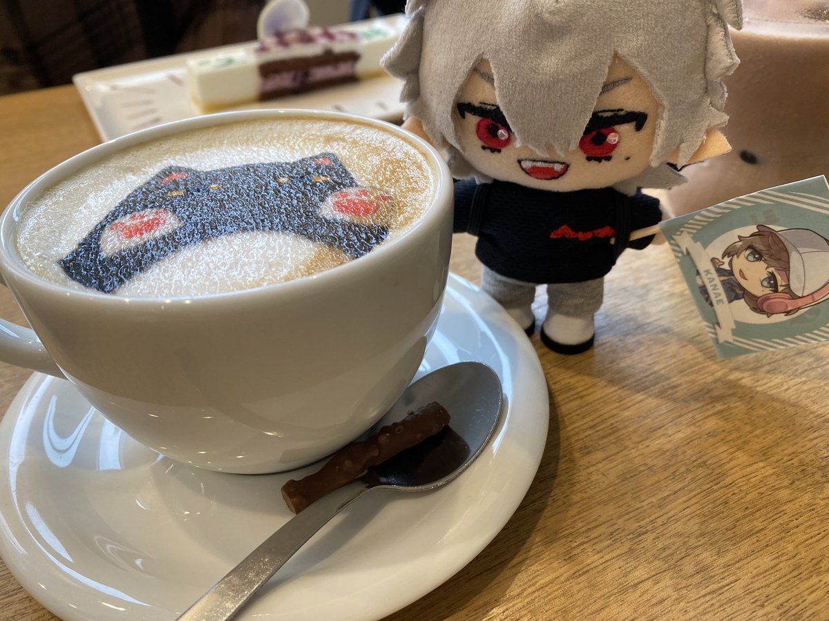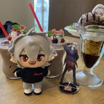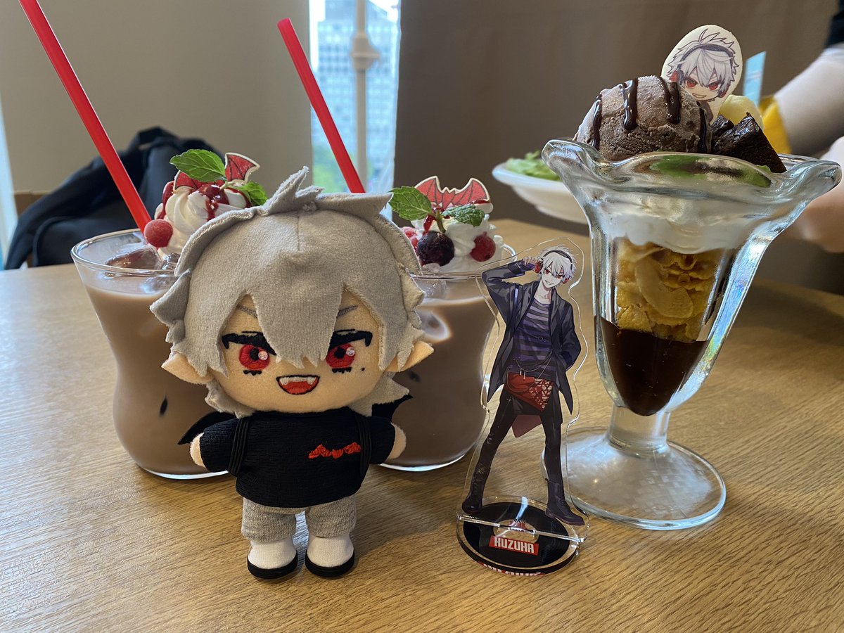にじさんじコラボカフェ後半ー! うちわ葛葉自引きしてもうそれだけで満足( ¯﹀¯ )♡ 叶のオムライス🍙美味しかったし葛葉のパフェもめっちゃチョコで美味かった♡ 作ったばっかの葛葉ぬいと行ってきた( *´︶`*) #自作ぬい #にじさんじ手芸部