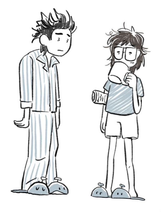 also here's an old merch idea of kez slippers I never posted feat. sleepy bedheads ryan and min 🥲 #InfinityTrain
