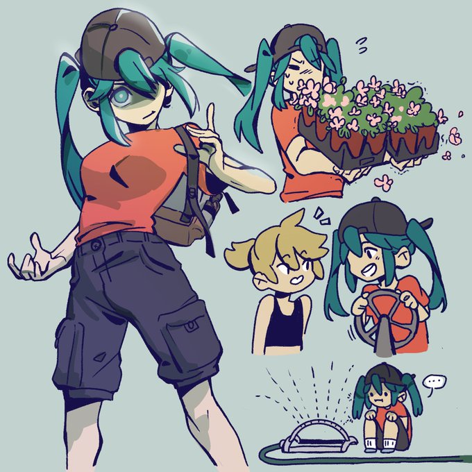 d5 miku but she’s doing my summer groundskeeping job and I tried to do line art this time #miku100 #MikuMonday