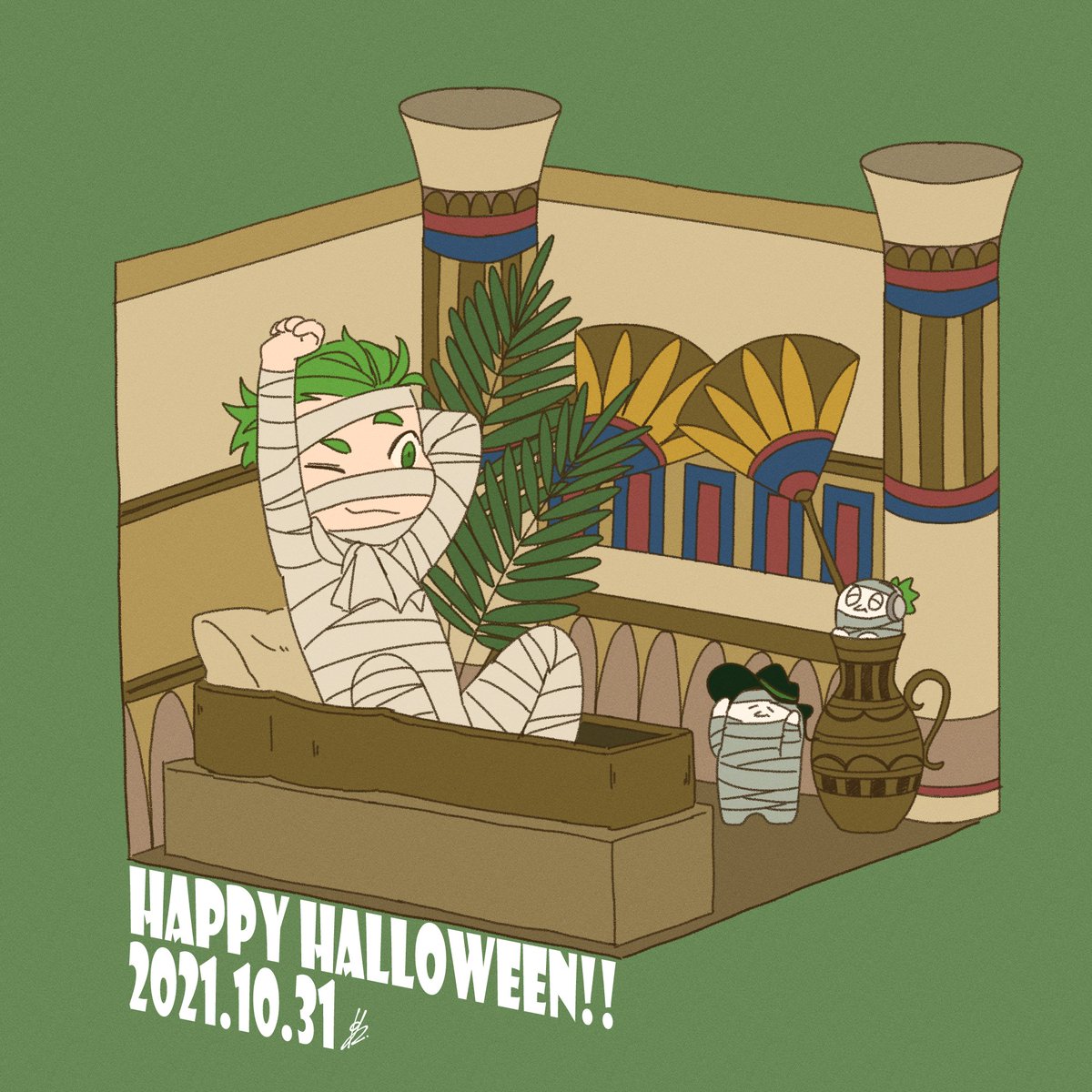 51 500 Happy Halloween! 御三方の仮装モチーフが皆眠りから覚めたキャラなのとても好きです🎃 #2bropics 21/10/31 00:00