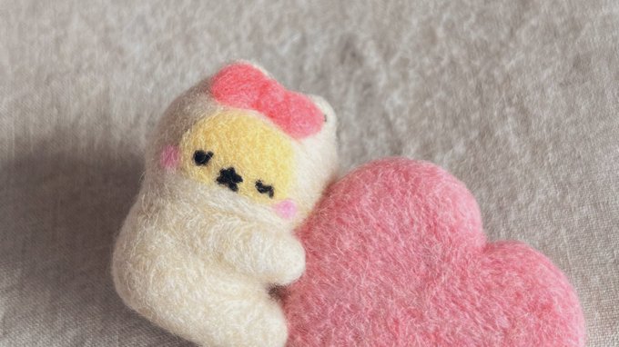 1 4 そろそろこちらの季節ですね。。♪ 後ろ姿だけちらっと(✿´ ꒳ ` )🌸 (*近々minneにふたたび登場します) #和菓子 #羊毛フェルト 23/02/16 09:52