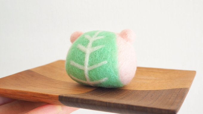 そろそろこちらの季節ですね。。♪ 後ろ姿だけちらっと(✿´ ꒳ ` )🌸 (*近々minneにふたたび登場します) #和菓子 #羊毛フェルト