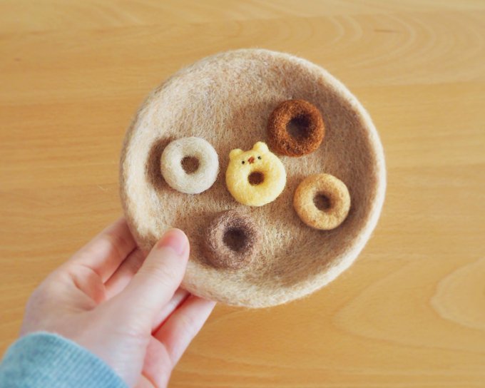 ベーグルぞろぞろ。。♪ みなさんは何味がお好きかな? ( ˘͈ ᵕ ˘͈ )💭✰︎ #パン #ベーグル #羊毛フェルト