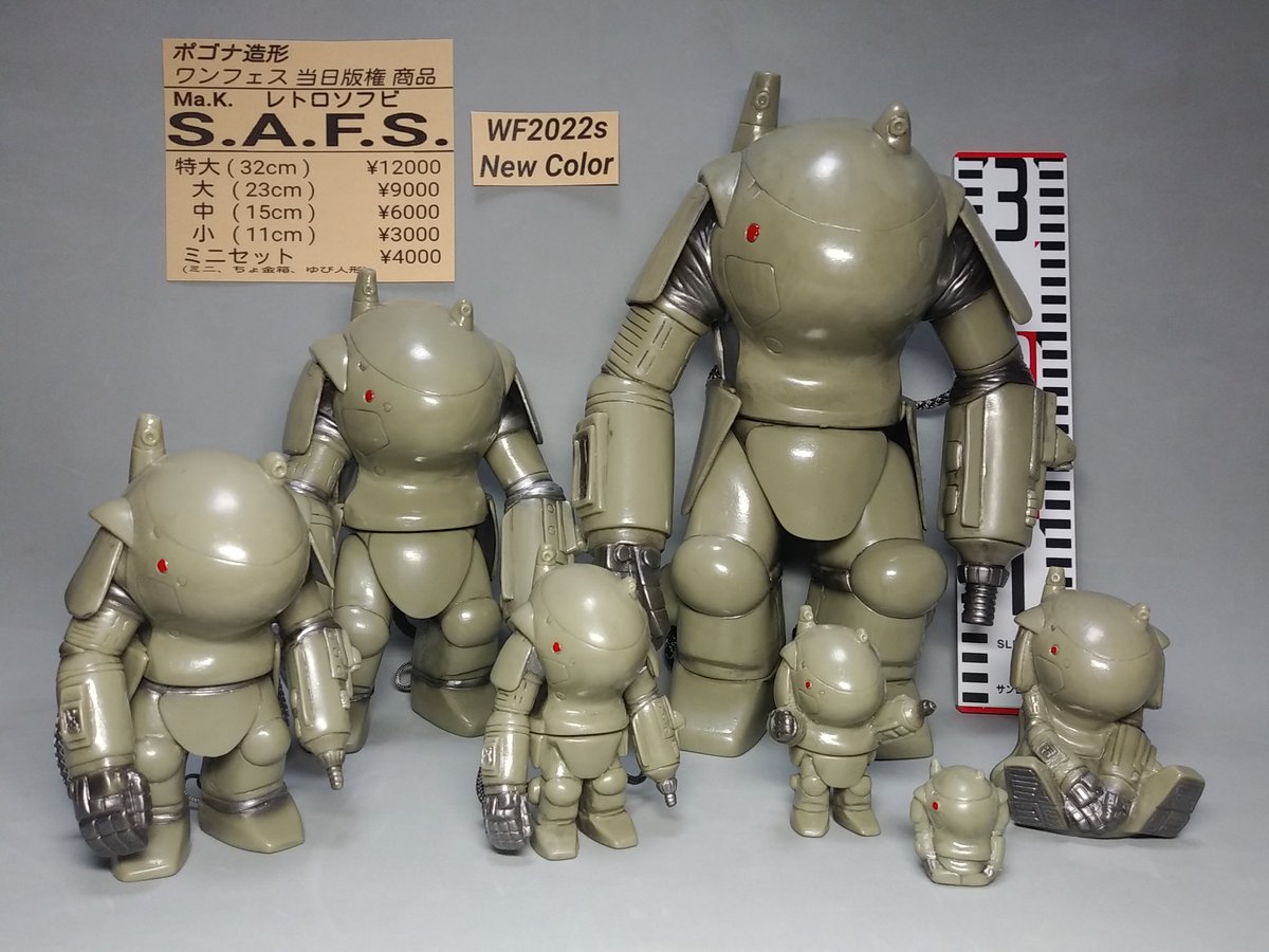 90 387 ワンフェス2022夏 ポゴナ造形 当日版権商品 [ Ma.K. レトロソフビ S.A.F.S. ] 販売許諾 いただきました。 横山宏様 ありがとうございます。 今回の ソフビ成形色 は ·日東プラモデル S.A.F.S. 成形色 (シナイグレー) ソフビ製 完成品 です。 #マシーネンクリーガー #WF2022s #ソフビ 22/06/07 10:17