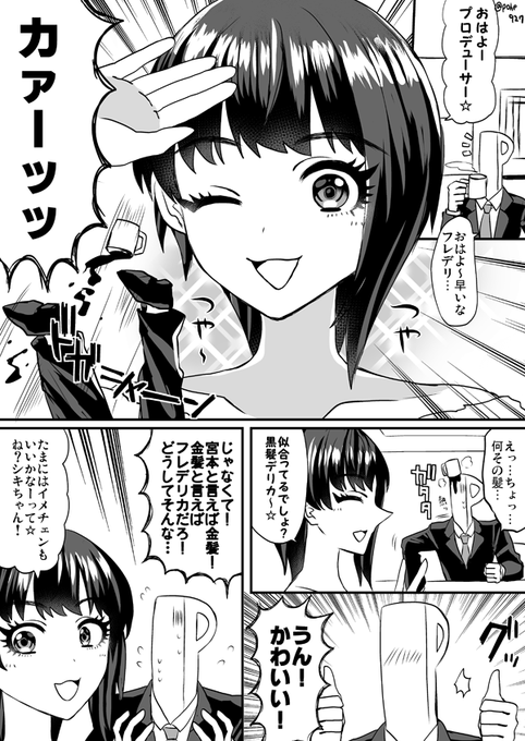 102 294 フレちゃんお誕生日おめでとう~!!!!(2020年の漫画再掲です) #宮本フレデリカ生誕祭2022 #宮本フレデリカ誕生祭2022 22/02/14 01:32