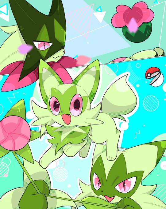 いっぱいニャオハ🐱🌿 #ポケモンイラスト