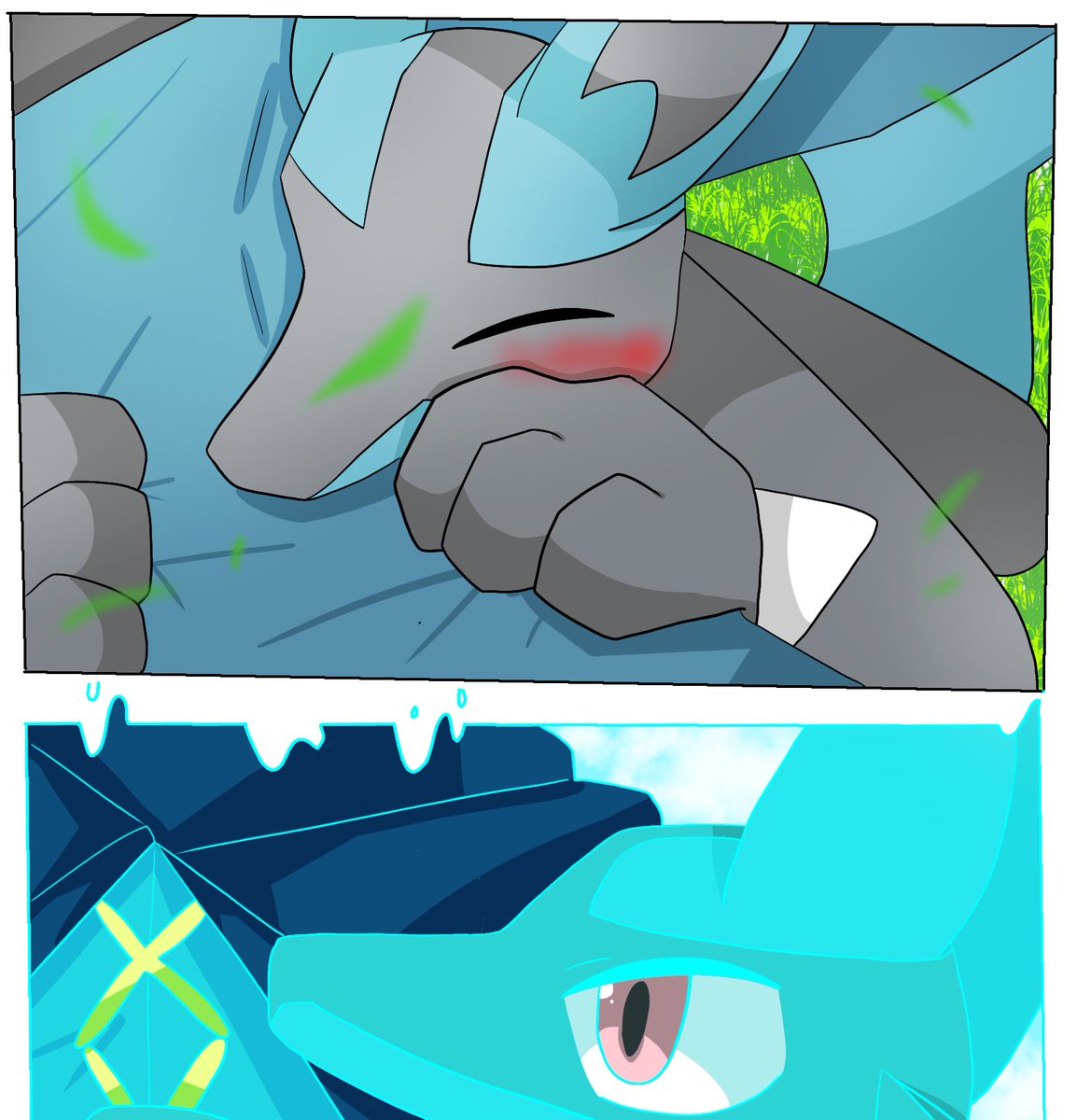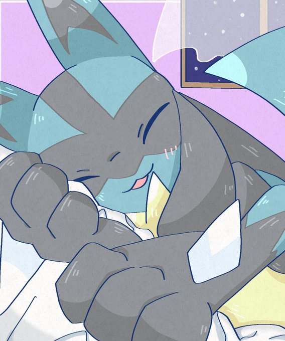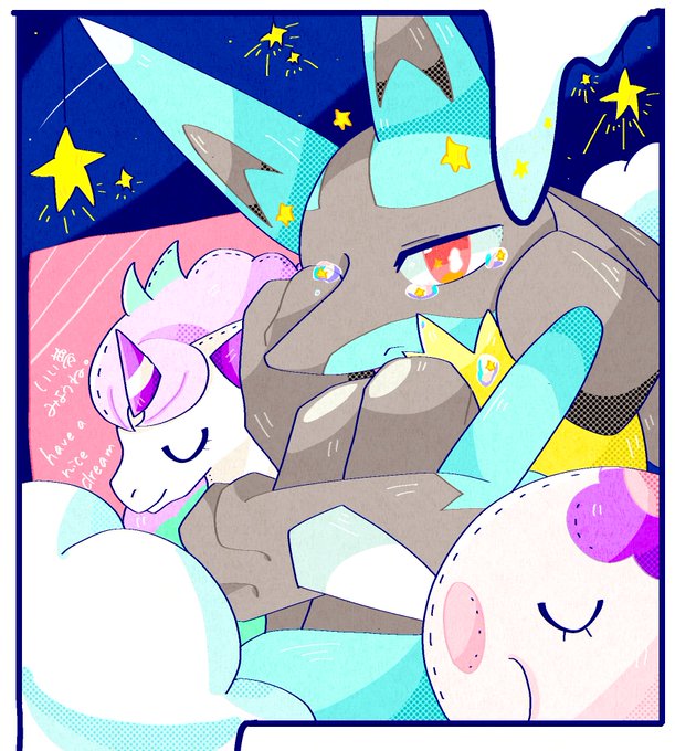 添い寝ルカリオ🐶 #ポケモンイラスト
