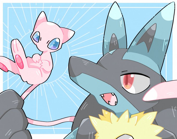ルカリオとミュウ #ポケモンイラスト