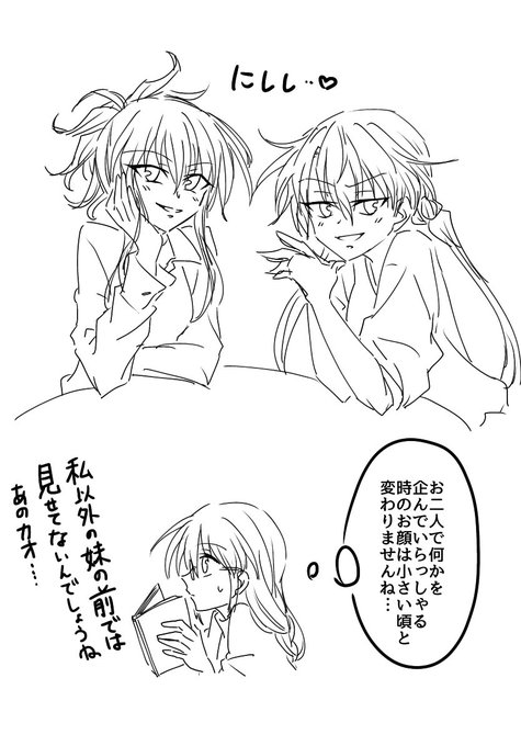 7 16 シスプリ落書き 千影「…………悪い顔だね……………」 咲耶「サプライズとか考えてるとどうしてもそういう顔になっちゃうみたいね…」 鞠絵「私はお二人のこういう表情は大好きですよ」 23/07/10 21:51