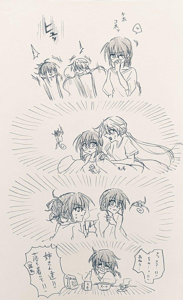 19 43 シスプリ落書き いつもは冷静に対応するけど、鞠絵の咳一つでたまーに咲耶と千影が慌てまくってると嬉しい(私が) 23/08/08 21:40